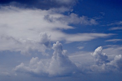 Dark clouds march across blue skies
